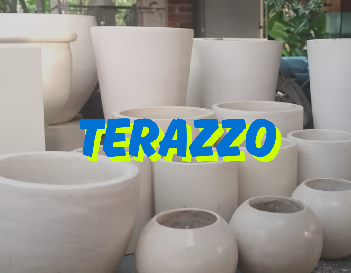 Tidak hanya di dalam rumah, teraso juga menjadi primadona di area outdoor. Pot terazzo atau pot bunga dari teraso memberikan sentuhan elegan dan kemewahan yang sulit ditandingi oleh pot keramik atau plastik biasa.